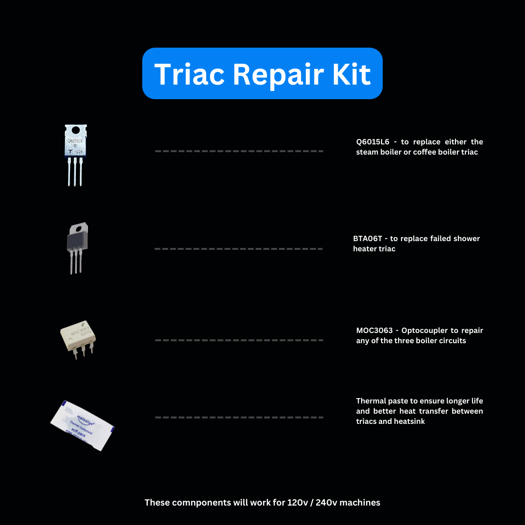 This kit includes a triac for the steam or coffee circuit and the group head circuit